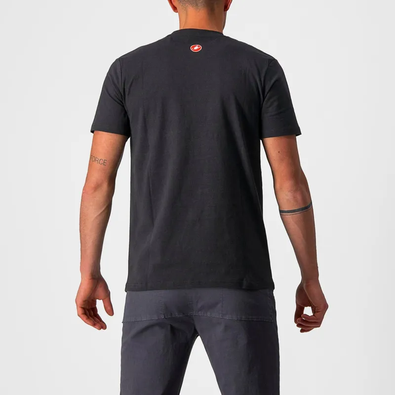 The Castelli Maurizio T-Shirt is designed to look racy, with its selection of traditional racing colours, its evocative Rosso Corsa wordmark, and of course the screen-printed Castelli graphic denoting cutting-edge performance. Bike fans will have you down as a competitor on sight.